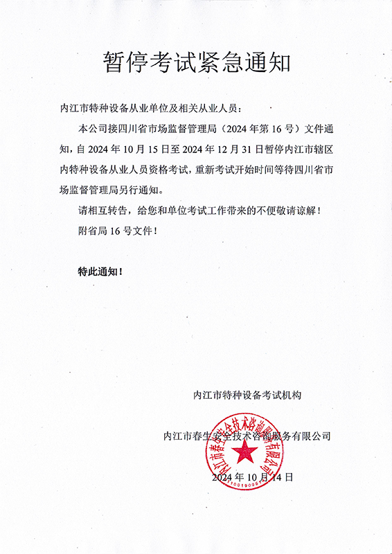 關(guān)于2025年內(nèi)江市特種設(shè)備從業(yè)人員開始考試的緊急通知