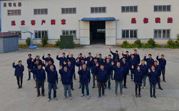 蘇明電器總經(jīng)理周慶忠與職工在一起