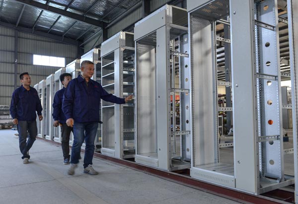 蘇明電器總經(jīng)理周慶忠查看生產(chǎn)線(xiàn)